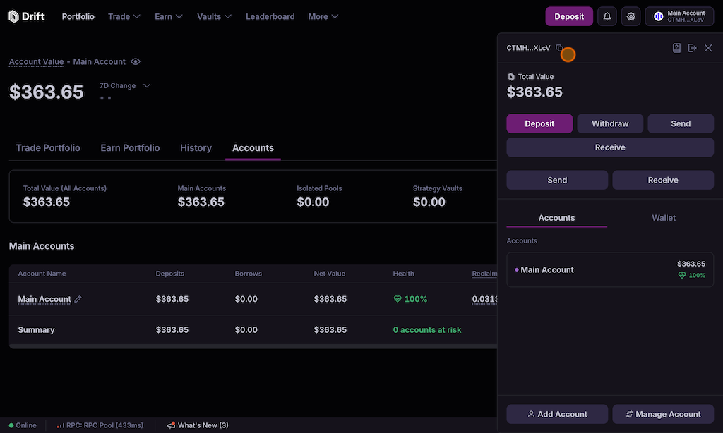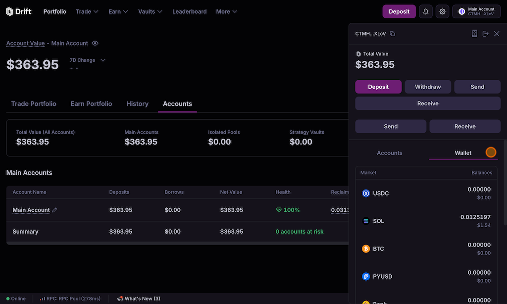 In the future, if you prefer to connect with your own Solana wallet to Drift, you can do this at any time and a new Drift account will be created